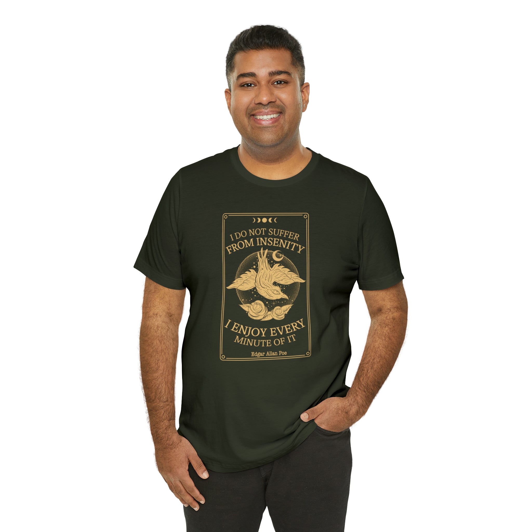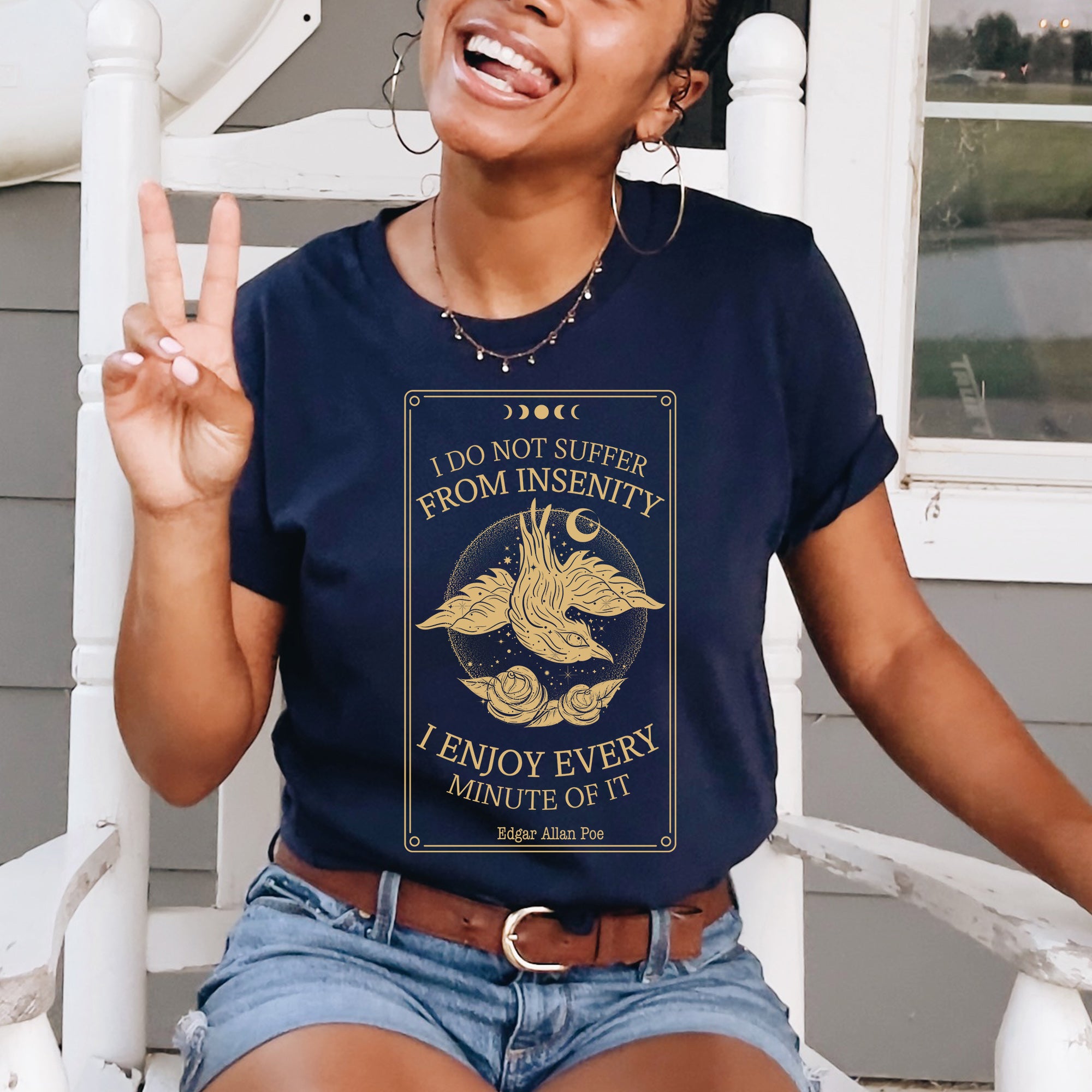 This Edgar Allan Poe bookish shirt features the iconic first page of the first English edition of the poem The Raven. The book is now in the public domain.